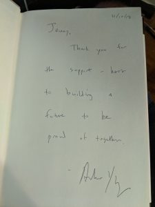 First off, I want to say thank you to my wife Jenny. She's a corporate lawyer and she's Chinese and she really seems to care about the American people. Other than that I don't know that she has much in common with Andrew Yang, but she did meet him in 2018 which is why I have a copy of his book, SIGNED no less :) (as a rule I generally don't buy books based on politicians, although I did buy The Art Of The Deal once for a friend). Overall impression: I liked the book, I think his style of speaking casually, following almost every point up with hard numbers (#math y’all), and oftentimes relating what the numbers mean. For example, he’ll talk about the rising cost of education. He won’t just say it’s going up he’ll give a year with a number (like, college in 1975 cost $5,000 on average adjusted for inflation, in 2014 it cost $25,000) or he will just give a raw percentage (like, 20% of the jobs in our country are in retail and 85% of these will be automated in 10 years), and relating a lot of his points to his own life so that you know where he’s coming from. Things I didn’t know about Andrew Yang before reading this book:
