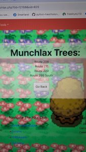 so above are our Trainer's Munchlax Tree locations for Pokemon Platinum based on our Trainer's ID (easily found in game) and our secret ID (I used a program called pkhex to rip this from our game). Anyway we need to wait 6 hours, for a 1% chance, for a Munchlax. Ocean wants a girl so only 50% chance there assuming we catch it. I think she also said she wants "a combination" of it being shiny too (1/8000 chance). It's going to be a long winter (remember when Arnie said that?).